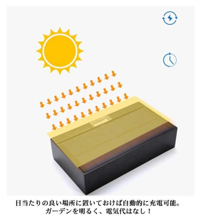 | サイズについての説明 | サイズ:19.8*10.8*4.6CM バッテリー:4400mAh タイプ : 常時光る ソーラー功率:2W 連続使用時間:6-8時間 ルーメン: 200LM 本体重さ:0.7kg 電源:ソーラー式 |