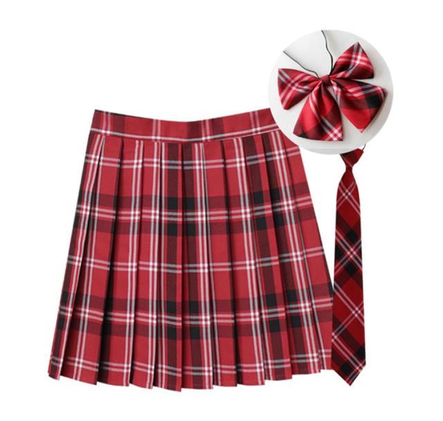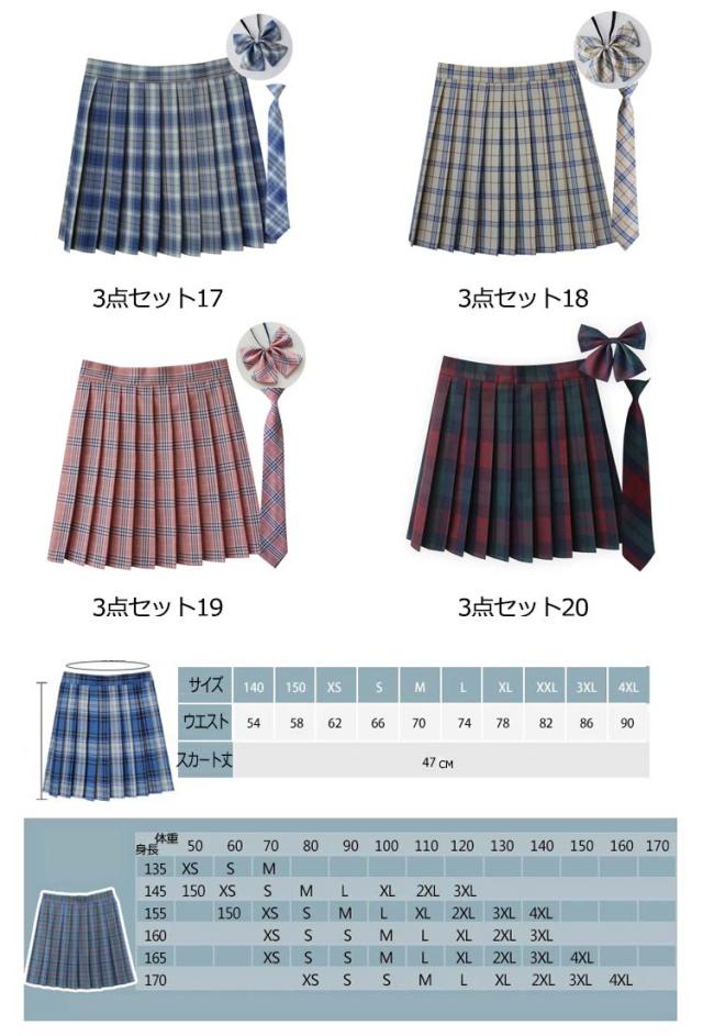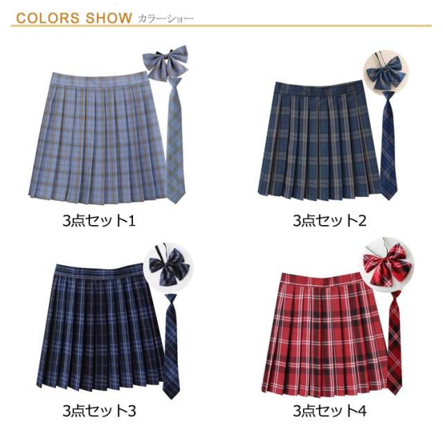 【3点セット】 【送料無料】 【全20色】 制服 スカート プリーツスカート 丈47cm スクールスカート チェック スクール 赤 タータンチェック スカート リボン ネクタイ ボウタイ リボンタイ 制服 セット 中学校 中学生 女子高校