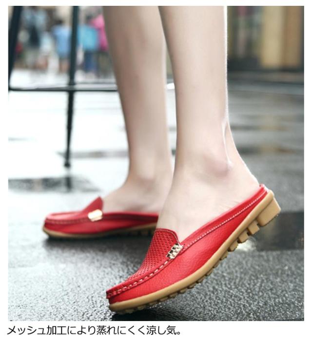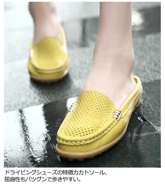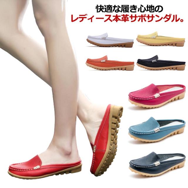 サボ サンダル レディース サンダル サボサンダル メッシュサンダル 履きやすい 本革 牛革 モカシンシューズ 通気性 革靴 カジュアルシューズ ローファー メッシュ スリッポン すりっぽん レザー 黒 白 送料無料 大きいサイズ