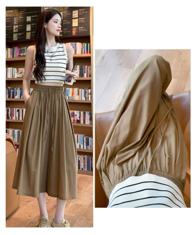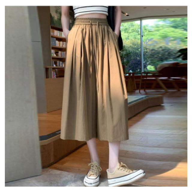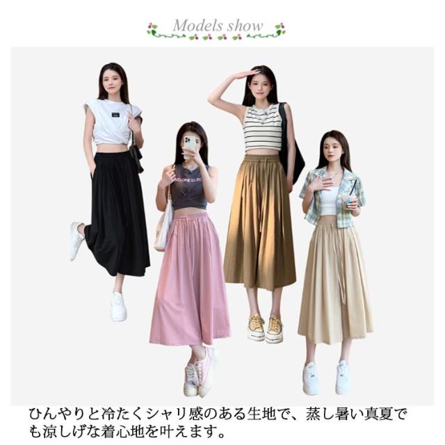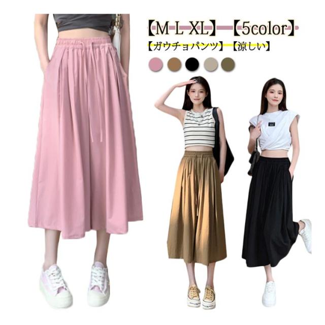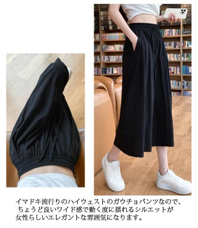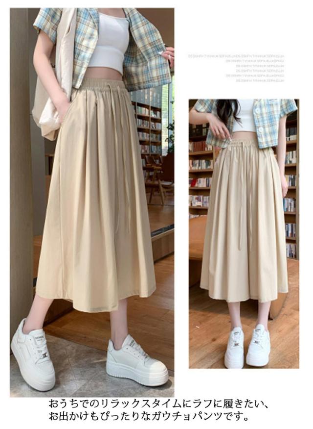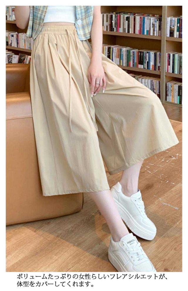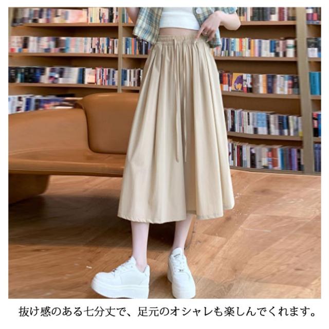 パンツ 七分丈 レディース ガウチョパンツ キュロット スカーチョ ワイドパンツ Aライン ウエストゴム ゆったり 薄手 膝丈 大きいサイズ 体型カバー ハイウエスト フレアパンツ チノパンツ シャリ感 楽チン 着痩せ 脚長 カジュアル オフィス お出かけ 涼しい 無地