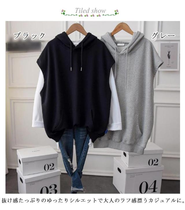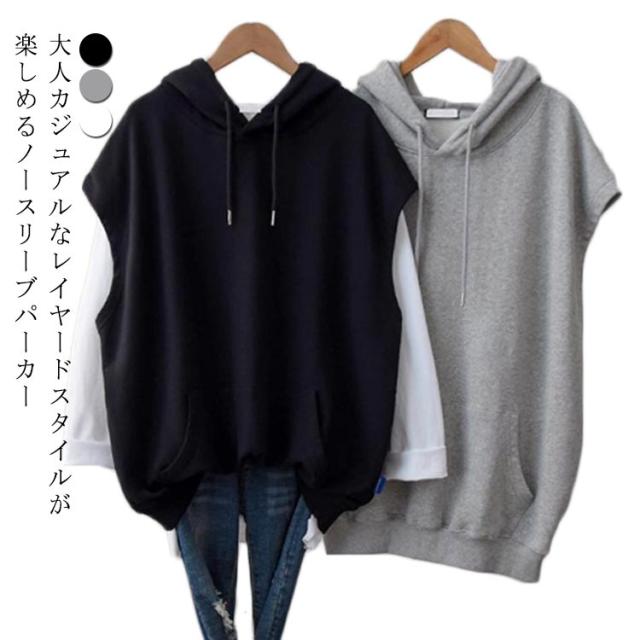 ノースリーブ パーカー レディース プルオーバーベスト スウエット パーカー フード付き プルオーバー トレーナー トップス レイヤード 重ね着 春秋 パーカーベスト ゆったり 大きいサイズ カジュアル 着痩せ 体型カバー シンプル おしゃれ 送料無料 プレゼント