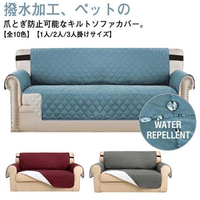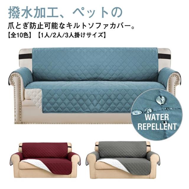 ソファカバー 肘付き 2人/3人掛け 撥水加工 犬猫対策 ペット 爪とぎ防止 ソファーシート 背もたれ かけるだけ ワイド 滑り止め 洗える 北欧 無地 おしゃれ ソファ カバー 保護カバー キルトパット 汚れ防止 傷防止 四季兼用 【送無】