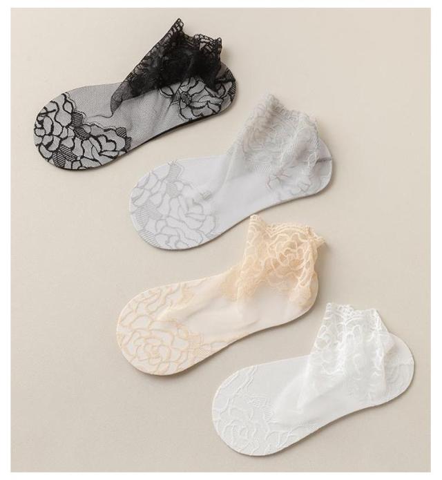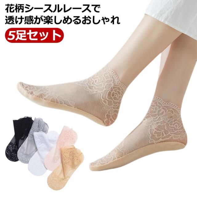 【5足セット】 【送料無料】 シアーレースショートソックス レディース シースルーソックス インナーソックス カバーソックス フェミニン 可愛い 靴下 シアー ショートソックス 通気性 脱げない 柔らかい 春夏 おしゃれ