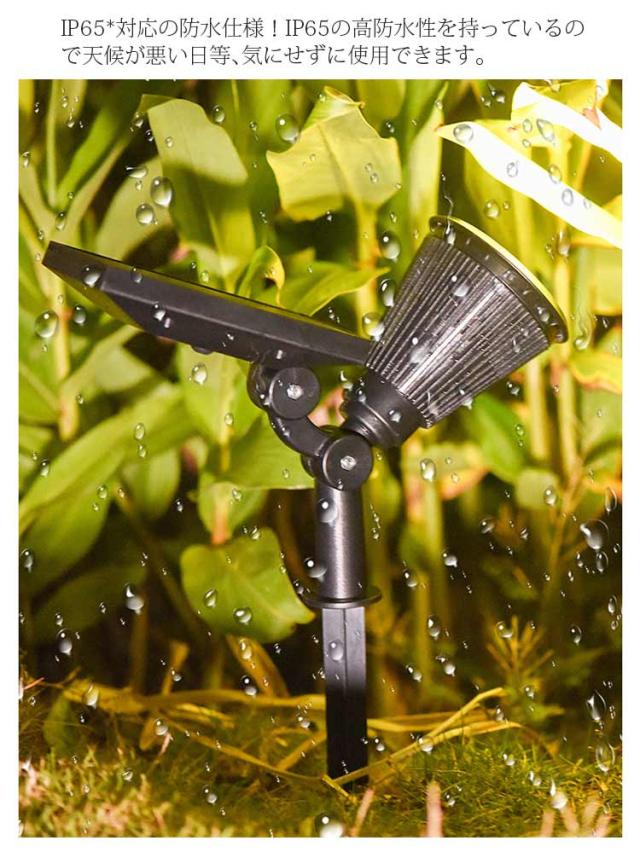 | 防水仕様!スポット型ガーデンライト 4本セット 太陽光で自動点灯&自動消灯。ソーラーパネルで直射日光の光を吸収し自動蓄電、 夜になると自動で点灯。 また、太陽の光を浴びると自動消灯します。 昼間にソーラーエネルギで自動充電し、太陽エネルギーを電気に変換します。一度設置すれば電気代は0円!消費電力は全くかからない上、二酸化炭素の排出量も大幅に削減できるため、温暖化対策として効果があります。 省エネかつ環境にやさしい。 IP65*対応の防水仕様!IP65の高防水性を持っているので天候が悪い日等、気にせずに使用できます。 2Wayで簡単設置!地面に差し込むだけの地面差し込み式とネジで取り付ける壁掛けの2通りの設置が可能。差し込み式/壁掛け式 角度調節が可能!日光を色々な角度から受けられる様に ソーラーパネルは180°まで回転することができます。ライトは縦方向に60°まで調節できます。 | |