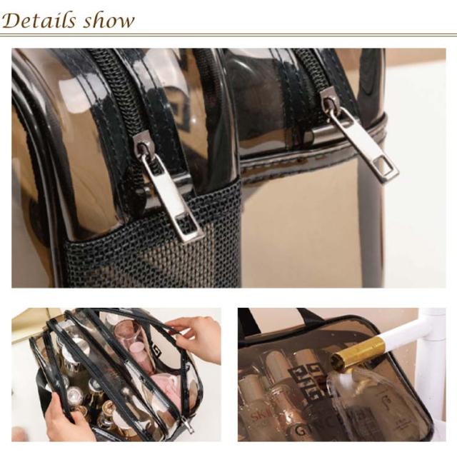 | 化粧品・トイレタリー・小物を一緒に収納できる大容量なメイクポーチです! クリアな外見で中身は簡単に識別し、置き取りも便利、化粧品をちゃんと整理できる。 軽くて耐久性が高い防水素材を採用し、軽量で持ち運び便利です。 お家での普段使い、出勤、出張、旅行先へのバッグインバッグにもピッタリ! 型崩れしにくいPVC生地を採用し、泥汚れもさっと拭くだけで落ちとすでき、お手入れが簡単。 | |