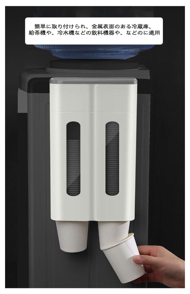 紙コップホルダー カップディスペンサー カップホルダー プラスチックカップ 2連 2連式 貼付 口径5.0-7.5cm おしゃれ フタつき 紙コップ 80個保管 大容量 使い捨てカップ 業務用 家庭用 壁掛け 壁面取り付け ウォーターサーバー オフィス クリニック 送料無料