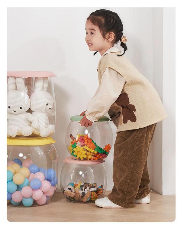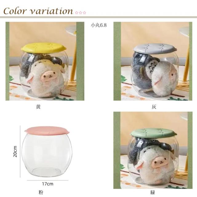 座れるスツール機能付き!ぬいぐるみ収納 透明 おもちゃ収納ボック 蓋付き 収納ケース スツール 収納 収納ボックス 収納ケース ディスプレイケース コレクションケース 防塵 円柱形 DIY 展示ボックス クリア 透明 子供部屋 玄関収納