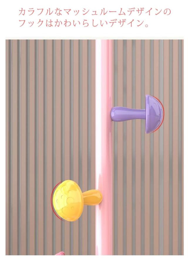 | かわいいデザイン、省スペースなポールハンガー。 表面は手触り良く滑らかな仕上がりで、洋服掛け、帽子掛け、カバン掛けとしてご使用いただけます。 カラフルなマッシュルームデザインのフックはかわいらしいデザイン。 組立て簡単!女性でも手軽に組み立てることができます。 生活に不可欠なコートハンガーです。 子供部屋、リビング、玄関など場所をとらないので、どこでも収納できます。 安定感抜群の30cm丸底デザイン、荷物が入ったバッグや冬の厚いコートを掛けても倒れる心配がなく、しっかり安定してくれます。 | |