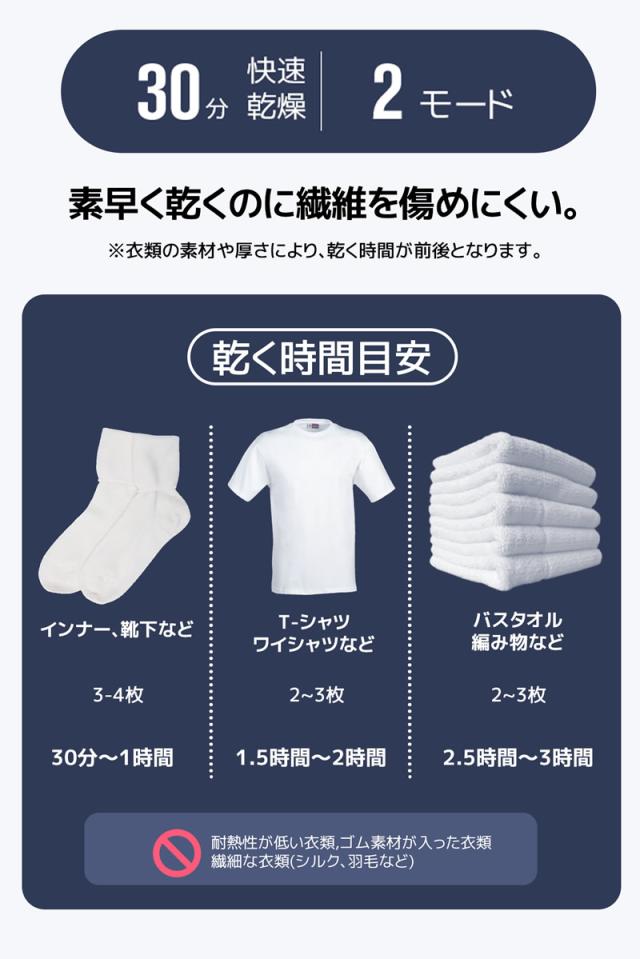 最短30分で乾くミニ乾燥機で忙しい家事から解放できる。