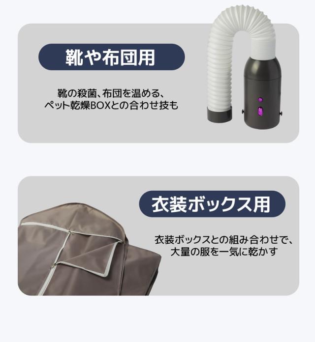 本体、小物乾燥袋、靴、布団用パーツ、衣類乾燥袋、ペット乾燥BOX、取扱説明書兼使用ガイド
