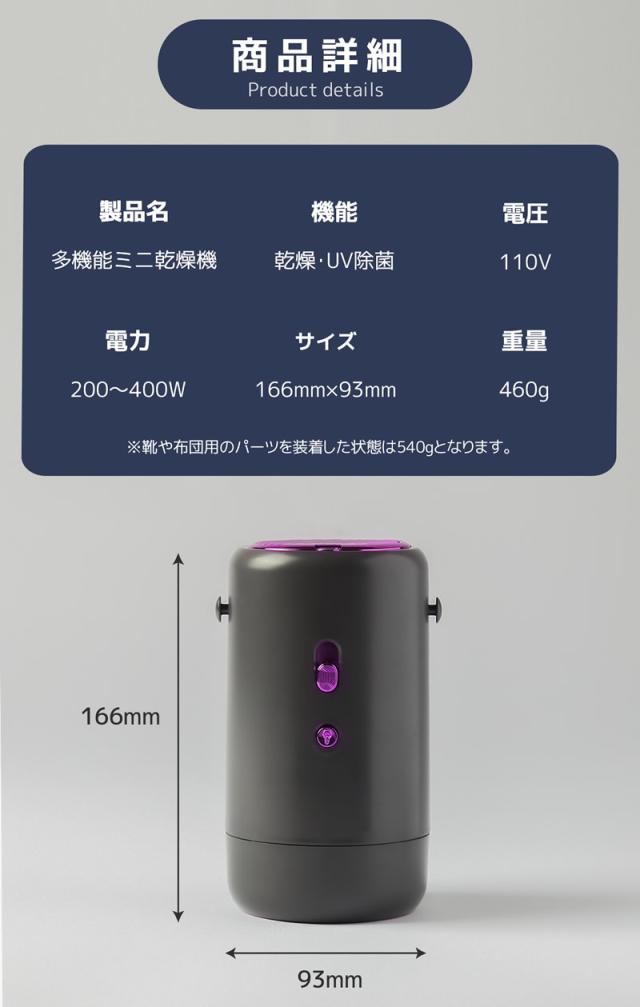 ポータブル多機能ミニ乾燥機 (送料無料) 乾燥機 ポータブル 洗濯 梅雨 花粉 室内干し 下着 靴下 靴 ペット 布団 衣類 雨 UV 軽量 簡単 出張