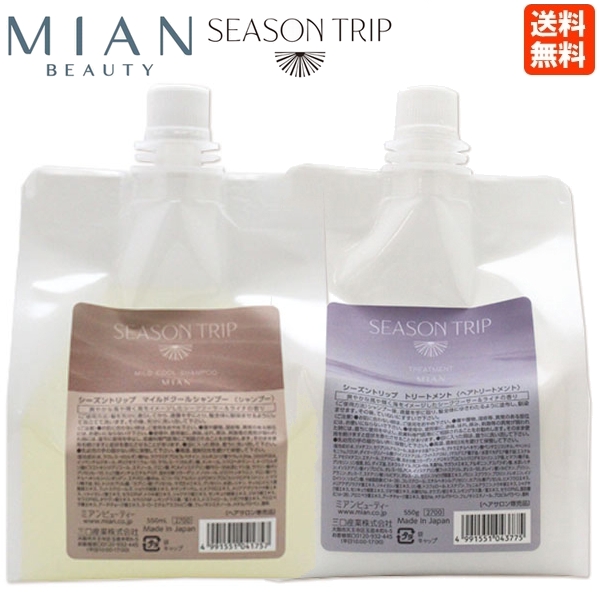 | 商品名 | ミアンビューティー シーズントリップ マイルドクール シャンプー 550mL レフィル + トリートメント 550g 詰め替え リフィル JANコード:シャンプー 4991551041757 JANコード:トリートメント 4991551043775 | ||