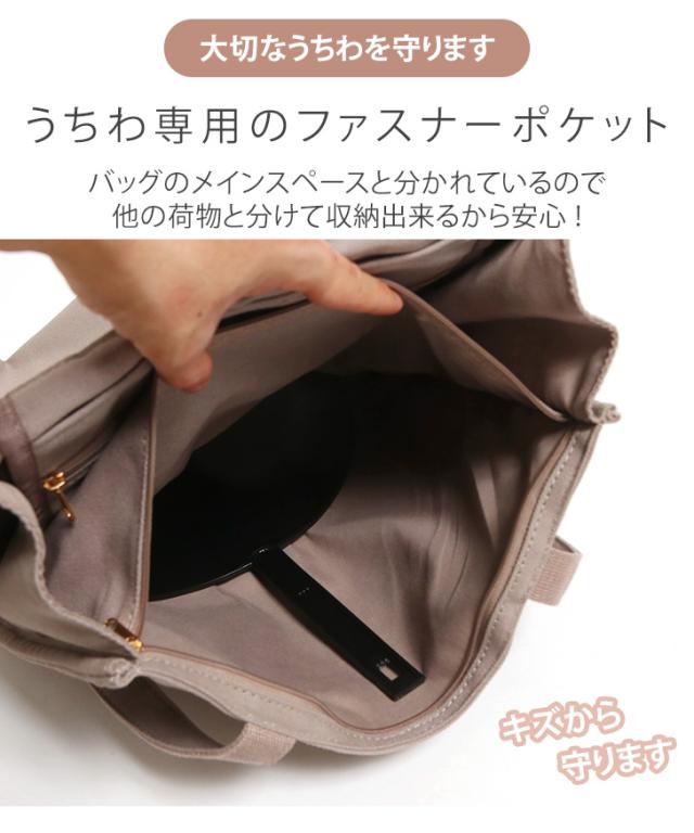 うちわ専用のファスナーポケット付きで、
