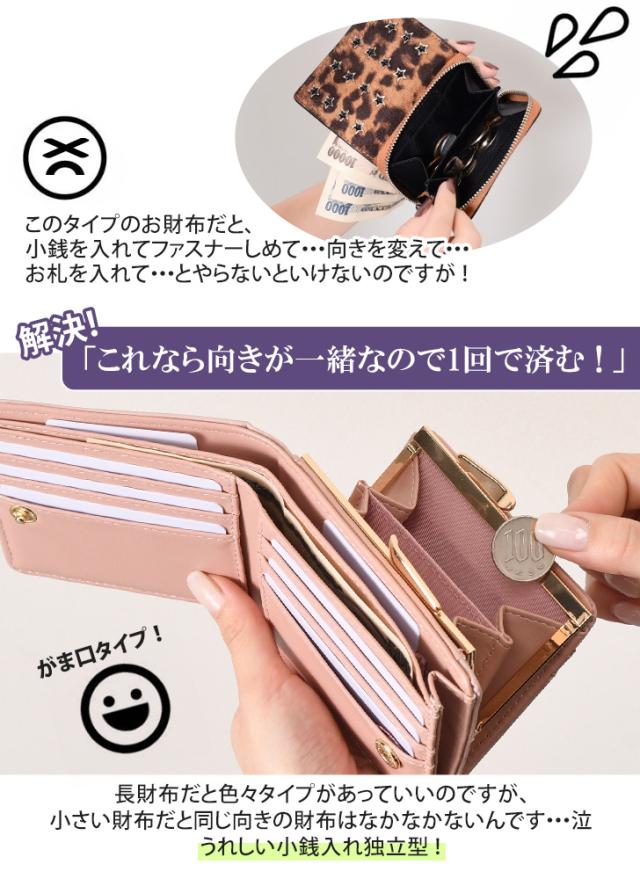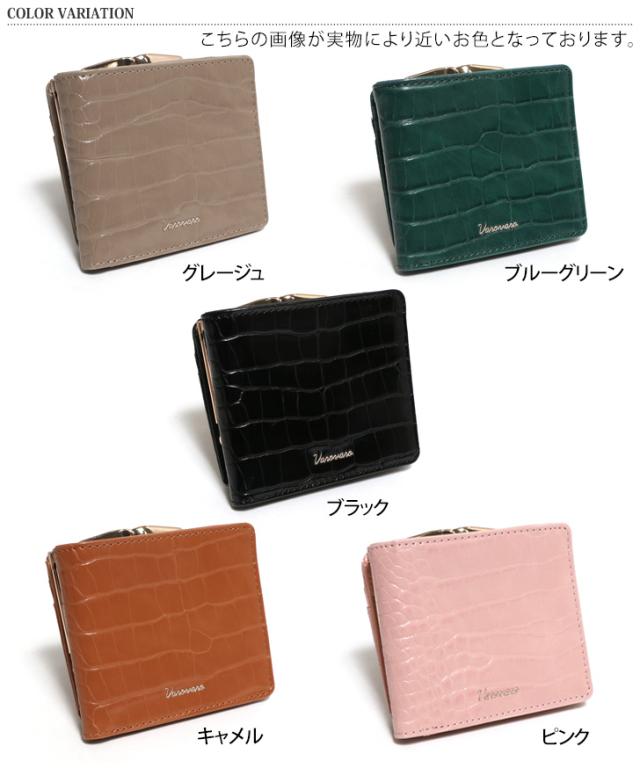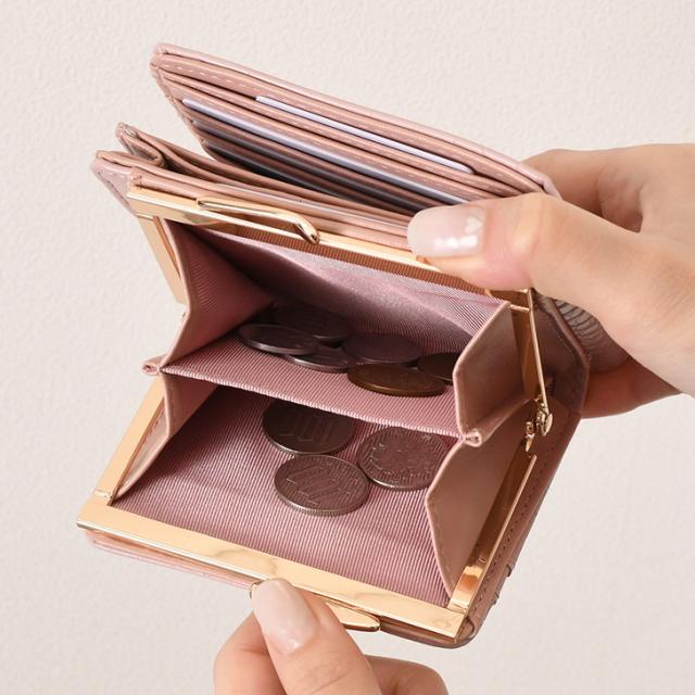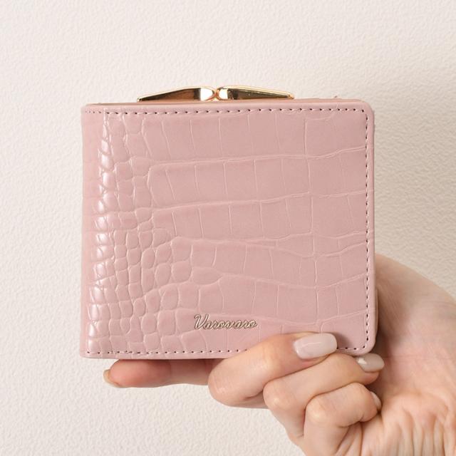 新作 がま口 クロコ型押し 二つ折り財布 レディース 財布 大容量 コンパクト 札入れ 小銭入れ 仕切り 2つ コインケース カード入れ カードケース おしゃれ かわいい 小さめ 多収納 ウォレット ボタン留め ロゴ