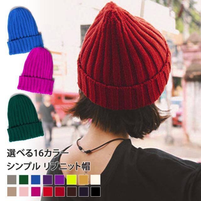 新作 選べる16カラー! シンプル リブ ニット帽 レディース メンズ 男性 女性 大人 女子 ビーニー ニットキャップ キャップ 帽子 キッズ 子供 おしゃれ かわいい 無地 カジュアル 韓国 防寒 秋冬 スノボ