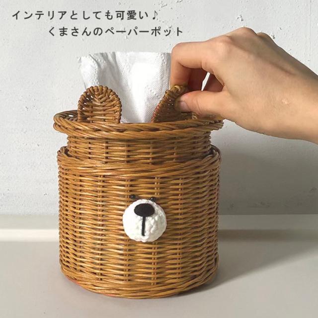 新作 くまさん バスケット ペーパーポット ティッシュケース トイレットペーパー ロールティッシュ ホルダー かご カゴ 編み 収納 クマ くま 雑貨 グッズ インテリア ディスプレイ おしゃれ かわいい 韓国 北欧