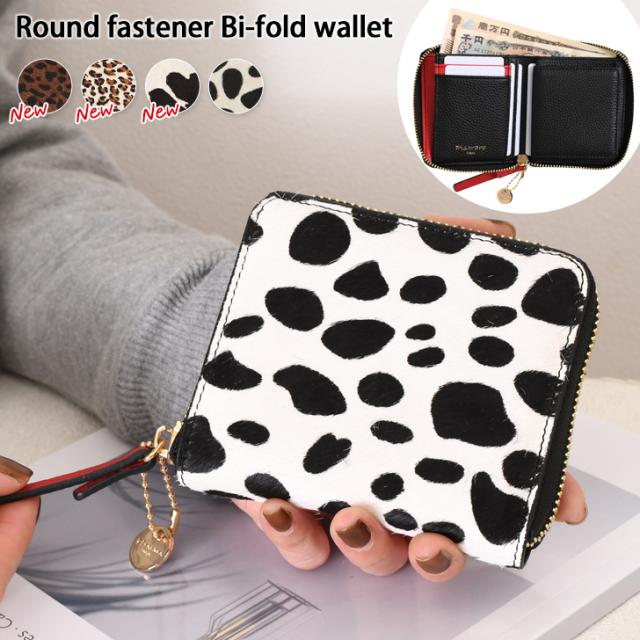 新作 ピソラロ Pisoraro ラウンドファスナー 二つ折り財布 ハラコ レディース カウレザー 牛革 本革 フェイクレザー コンパクト 小さめ 小さい財布 ミニ財布 小銭入れ ボックス コインケース カードケース カード入れ 母の日 プレゼント ダルメシアン ウシ 動物