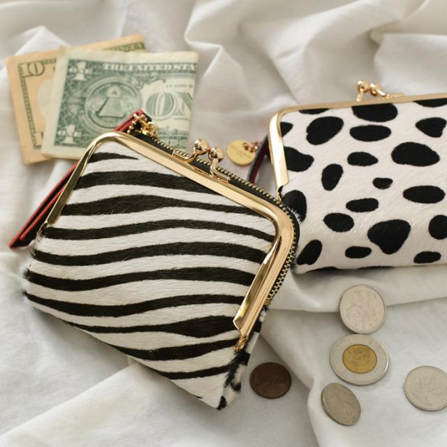 新作 ピソラロ Pisoraro がま口 二つ折り財布 ハラコ レディース カウレザー 牛革 フェイクレザー 本革 コンパクト かわいい 小さめ L字ファスナー 小さい財布 ミニ財布 小銭入れ メンズ コインケース カードケース 母の日 プレゼント ダルメシアン ゼブラ 動物 ウシ