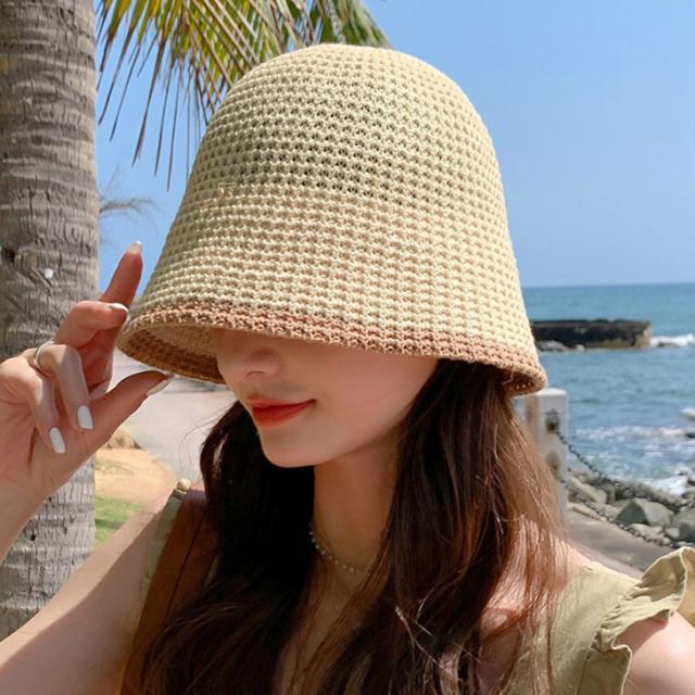 新作 クロシェ編み パイピング バケットハット レディース 帽子 ハット バケハ サーモハット ニット 深め 大きい 日よけ 折りたたみ おしゃれ かわいい 大人 上品 きれいめ 韓国 レトロ ファッション 夏 海