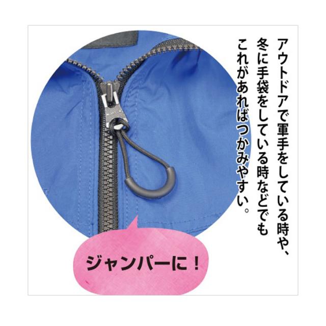 ファスナー引き手の穴に紐を通して結ぶだけの簡単取り付け
