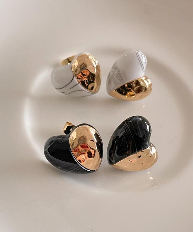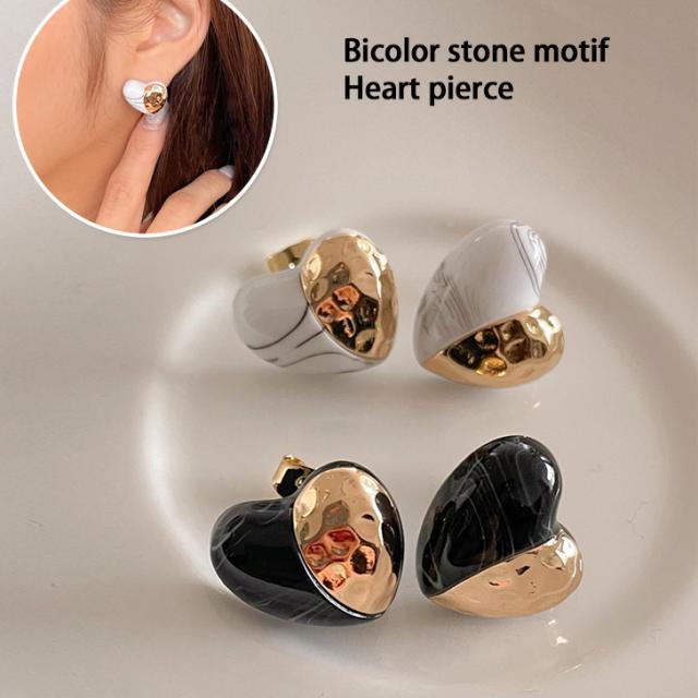 新作 バイカラーストーンモチーフハートピアス レディース アクセサリー 小さめ かわいい ゴールド シンプル 大人 上品 きれいめ カジュアル デイリー お出かけ 普段使い 両耳用 韓国 おしゃれ 可愛い プレゼント