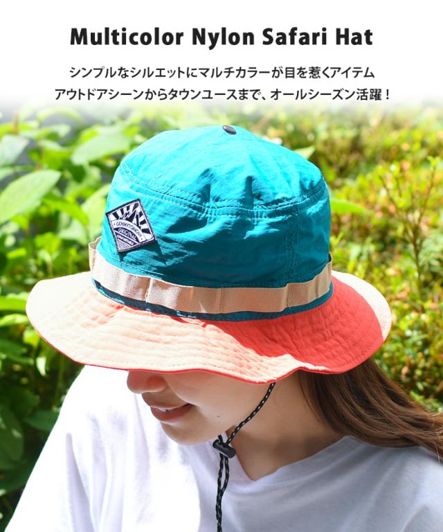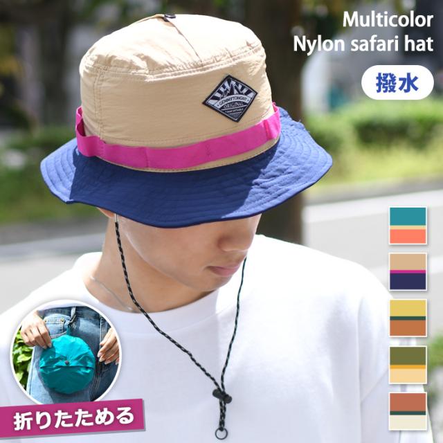 新作 パッカブル 撥水 マルチカラー ナイロン サファリハット メンズ レディース 帽子 ハット アドベンチャーハット バケットハット つば広 あご紐 大きいサイズ 折りたたみ 日よけ UV おしゃれ アウトドア 夏