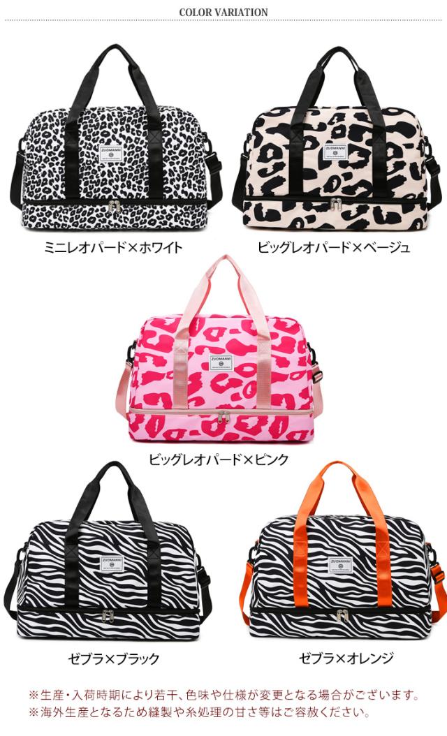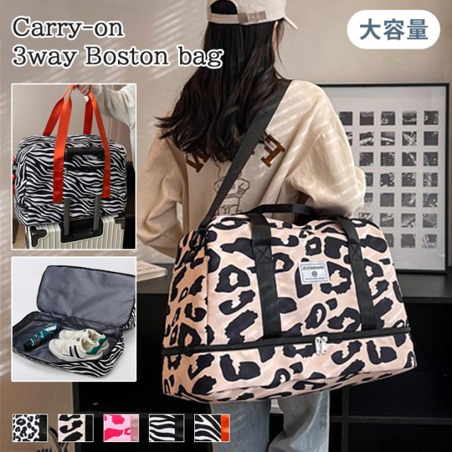 新作 3way キャリーオン 2層ルーム アニマル柄 ボストンバッグ メンズ レディース 大容量 旅行カバン トートバッグ ショルダーバッグ 大きめ 撥水 おしゃれ 旅行 トラベル 一泊二日 修学旅行 ジム ゴルフ