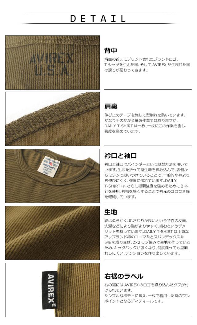 新作 AVIREX Tシャツ アビレックス デイリー 6143502 617352 メンズ 半袖 クルーネック avirex アヴィレックス インナー ブランド ギフト プレゼント 厚手 カットソー 無地 シンプル かっこいい クーポン対象外