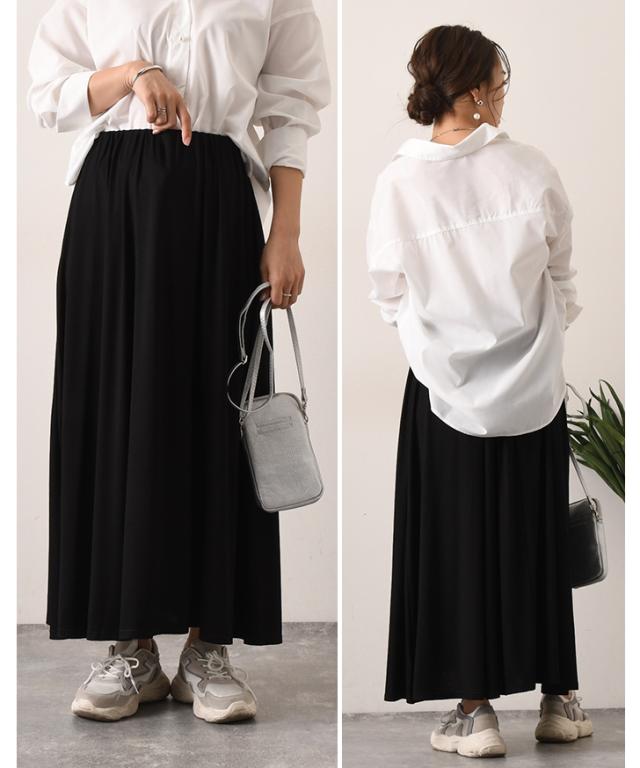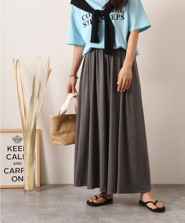 新作 ゆるてろボリュームロングフレアスカート レディース ボトムス 春 夏 おしゃれ ゆったり ウエストゴム 無地 シンプル お出かけ デイリー 着回し 体型カバー ベーシック ドレープ とろみ Aライン ロング丈