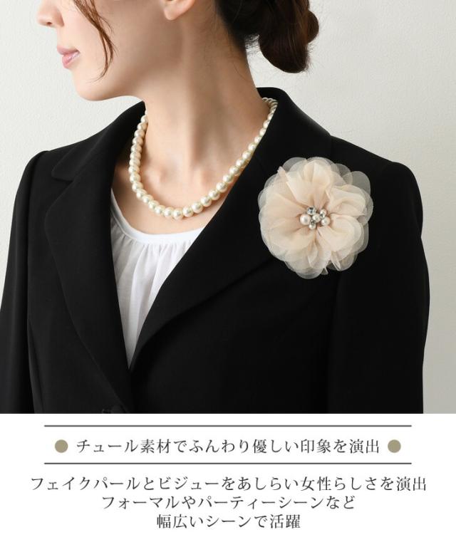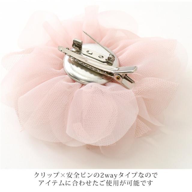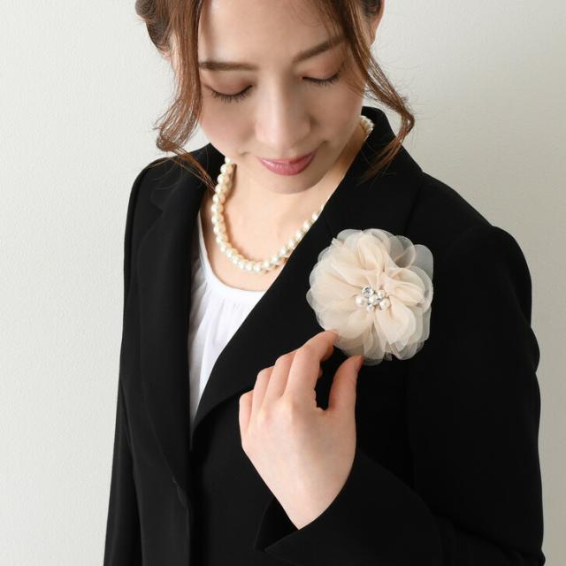 ●チュール素材でふんわり優しい印象を演出してくれるお花のコサージュ