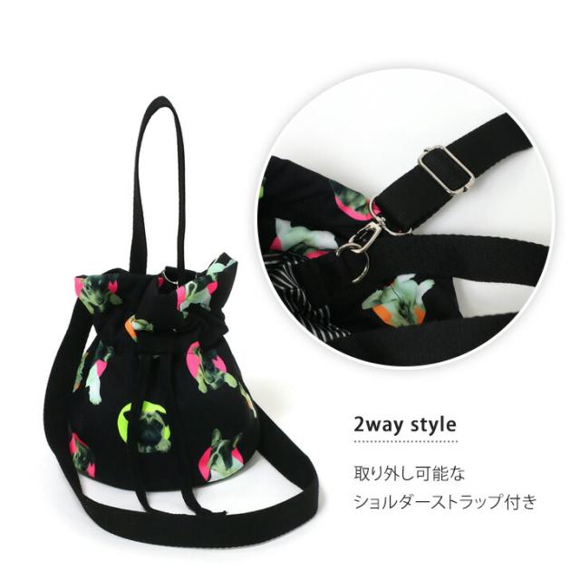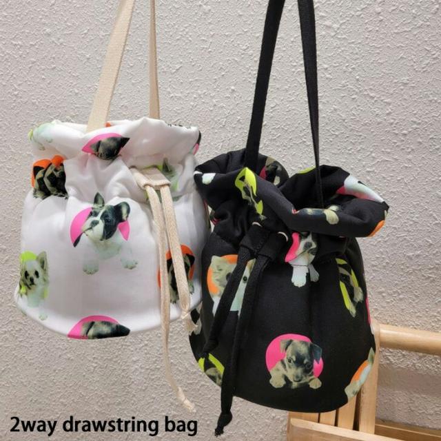 新作 ドッグプリント2way巾着バッグ レディース ショルダーバッグ ハンドバッグ ミニバッグ バケットバッグ 布 キャンバス 斜めがけ 肩掛け 犬 鞄 巾着型 上品 カジュアル 個性的 ユニーク 韓国ファッション 母の日 プレゼント