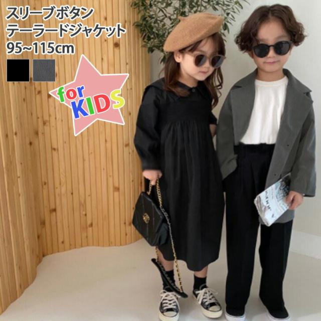 新作 【キッズ】スリーブボタンベーシックテーラードジャケット キッズ トップス アウター 長袖 女の子 男の子 ジュニア 子供服 子ども フォーマル ブレザー スーツ 無地 卒園式 入学式 羽織り 上着 通園 通学