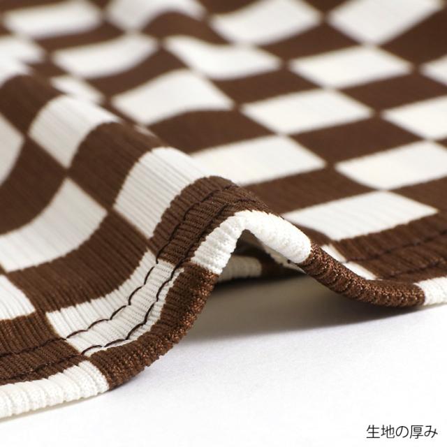 小さめのブロックチェックで派手すぎず、挑戦しやすい1着