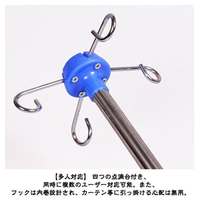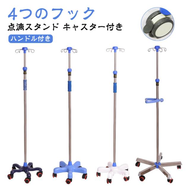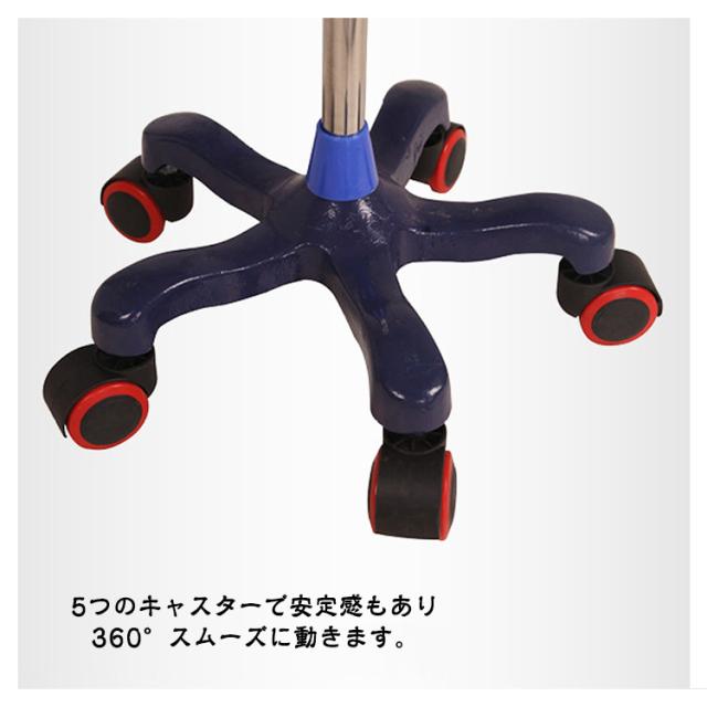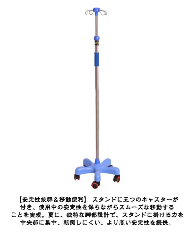 | 【点滴スタンド】【キャスター付き】【4つのフック】【ハンドル付き】 スイスイ移動ができるキャスター付きの点滴スタンドです。 5つのキャスターで安定感もあり 360°スムーズに動きます。 扱いやすい内巻きフック4本掛けタイプ。 【高さ自由調節】 点滴スタンドの高さは110〜190cmの間で自由に調節が可能。子供から大人まで身長や使用ニーズに合わせて使うことができます。 【安定性抜群&移動便利】 スタンドに五つのキャスターが付き、使用中の安定性を保ちながらスムーズな移動することを実現。更に、独特な脚部設計で、スタンドに掛ける力を中央部に集中、転倒しにくい、より高い安定性を提供。 【多人対応】 四つの点滴台付き、同時に複数のユーザー対応可能。また、フックは内巻設計され、カーテン等に引っ掛ける心配は無用。 【ハンドル】高さ自由調節可能なポータブルハンドルで点滴台の移動をより便利になる。 【適用範囲】病院 療養院 診療所 家庭 コミュニティ 家庭看護 診療所 ペット診療所 美容院 | |