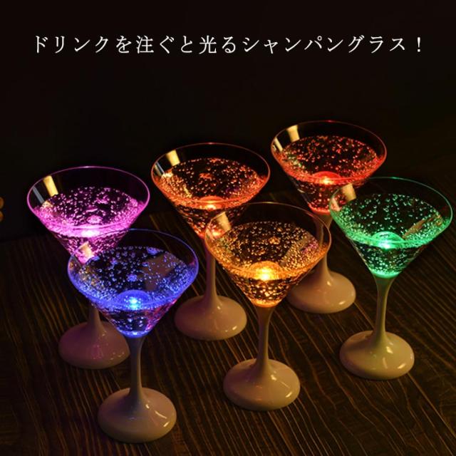 光るシャンパングラス シャンパングラス 電池交換可能 6脚セット 光るシャンパングラス プラスチック LED 6色 ワイン ゴブレット センサーネオン 光る 120ml 液体感知 カラーLED付き シャンパンフルート パーティー bar ホームパーティ 誕生日 クリスマス コップ
