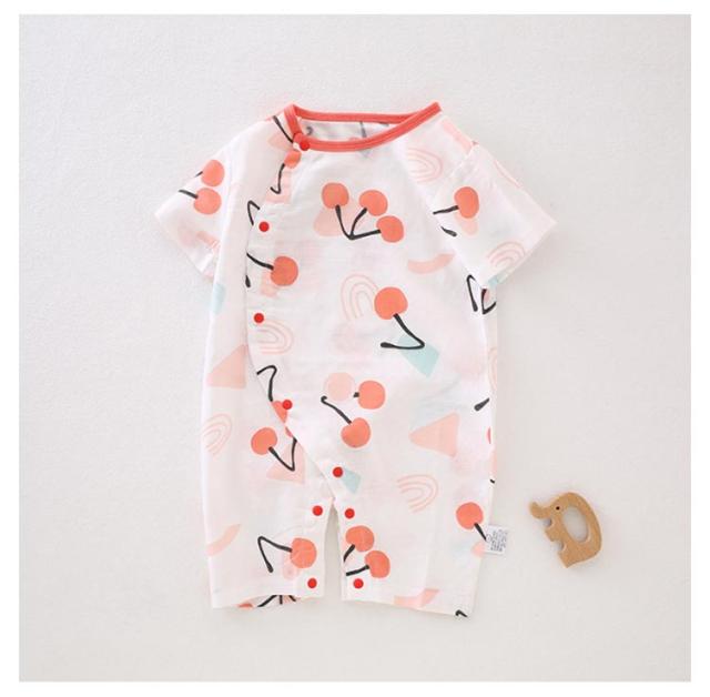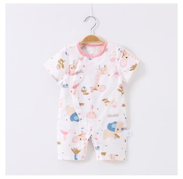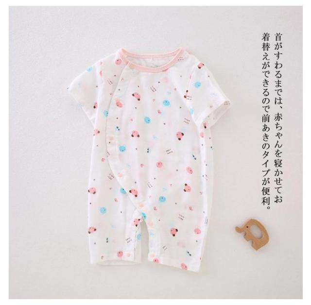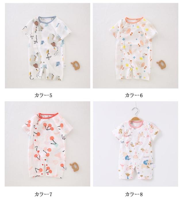 送料無料 ロンパース ボディースーツ 女の子 男の子 ベビー服 カバーオール キッズ 子供服 新生児 赤ちゃん 幼児 ベビー 半袖 コットン 前開き 前ボタン 総柄 可愛い かわいいパジャマ お部屋着 ルームウェア 出産祝い 59 66 73 80 90 春 夏服 夏