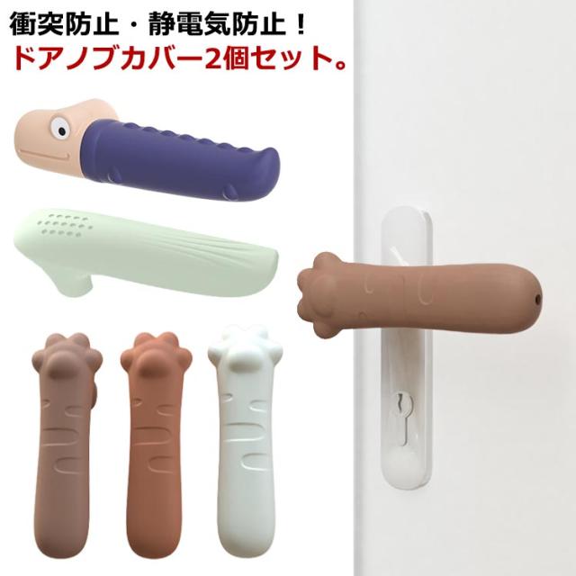 送料無料 ドアノブカバー 同色2個入り グリップクッション ドアハンドル ドアノブ レバー カバー ドア 子供 衝突 帯電防止 静電気 扉 家具 滑らない 肉球型 アニマル かわいい シリコン インテリア 子供部屋