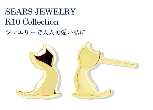 シアーズ ピアス レディース K10 スタッドピアス ネコ 猫 10金 スタッド 誕生日 プレゼント ゴールド ギフト ジュエリー sears クリスマス_wp