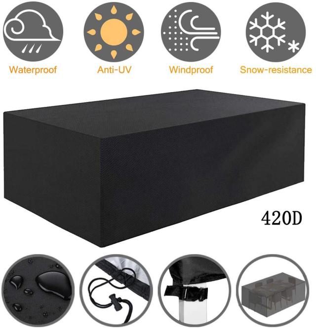 【悪天候用アップグレード素材】:パティオ家具カバーは、アップグレードされた高密度の420Dオックスフォード素材で作られています。この屋外パティオ家具カバーは、より優れた防水性を提供します。