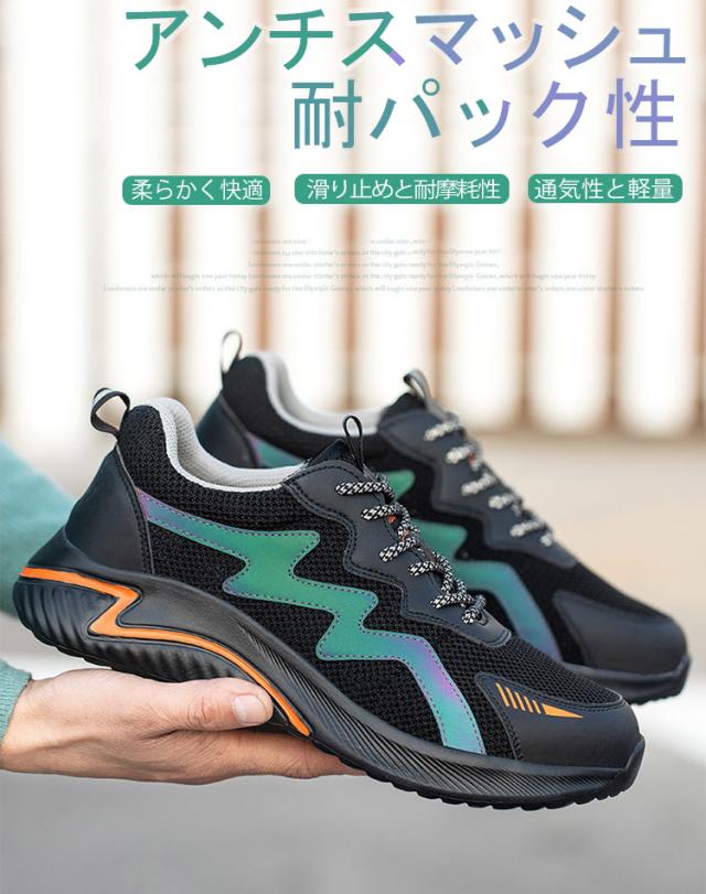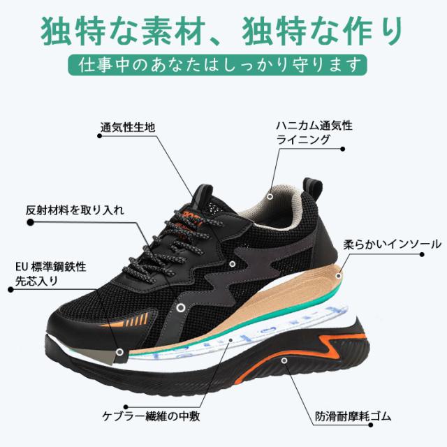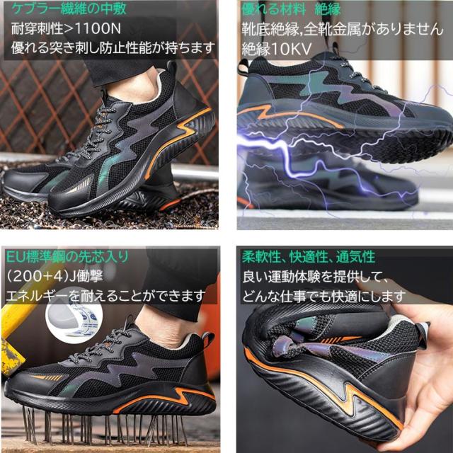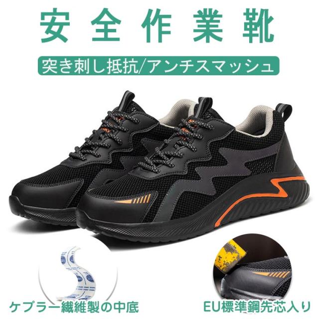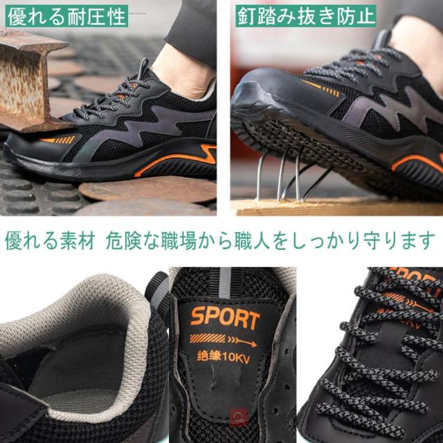 安全靴 作業靴 メンズ レディース 軽量 おしゃれ ファッション セーフティシューズ スニーカー スポーツ 黒 あんぜん靴 絶縁 靴 くつ ブラック オレンジ 幅広