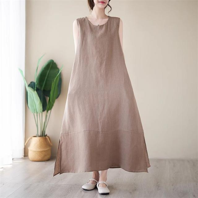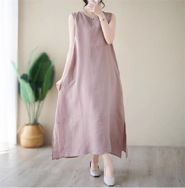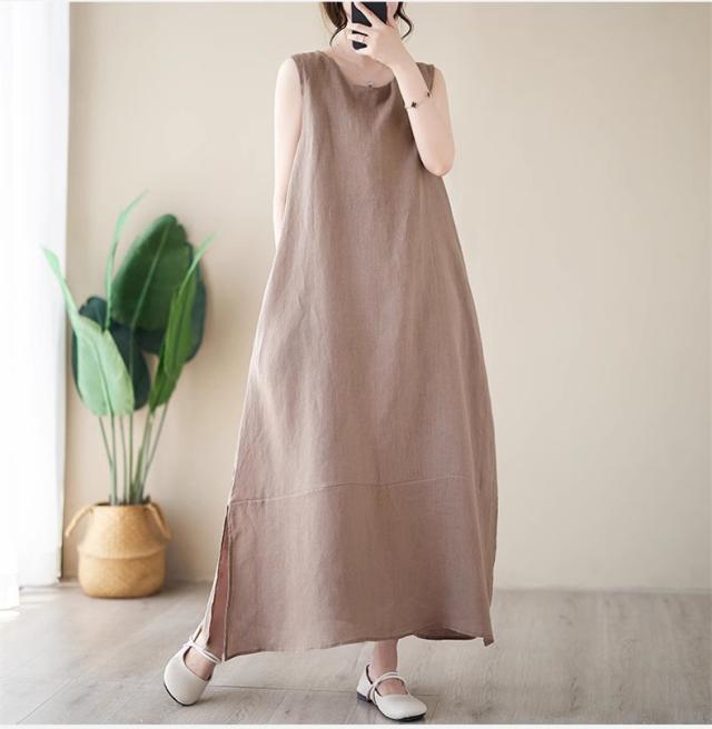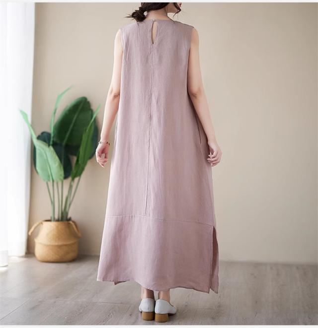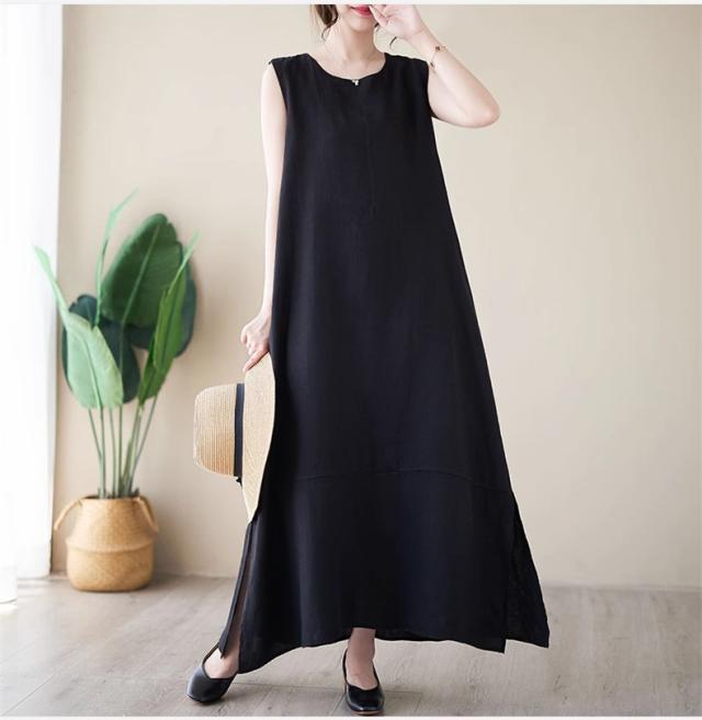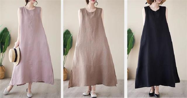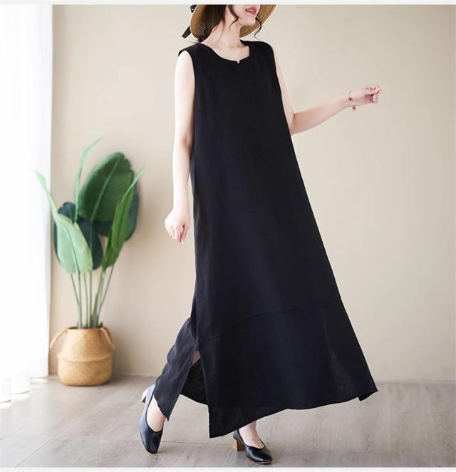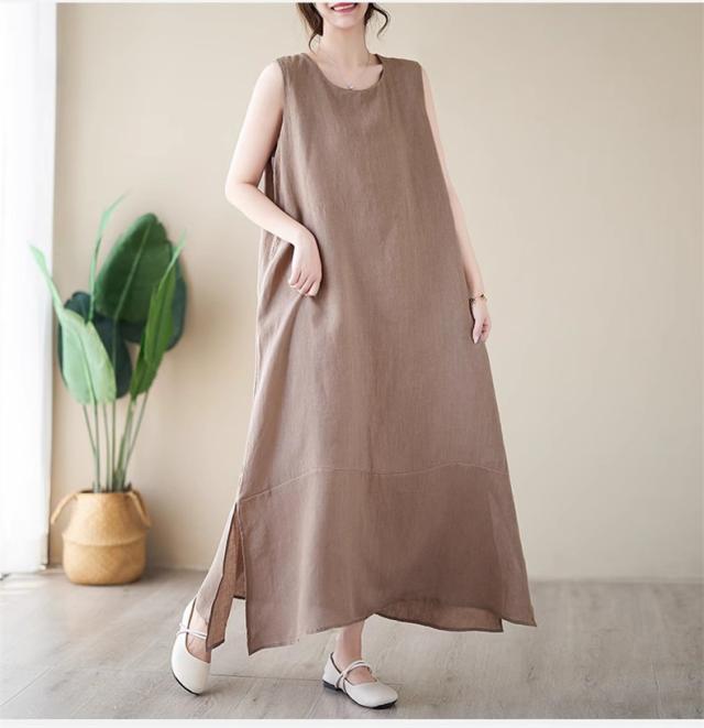ワンピース レディース 夏ワンピ ロング丈 ノースリーブ クルーネック マキシワンピース ボディライン拾わず着られる レディライクな着こなし お洒落