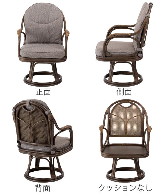 ラタン回転チェア 座面高40cm 天然ラタン 軽量 丈夫 ( 椅子 ラタン チェア 回転椅子 腰かけ 回転式チェア クッション チェアー イス いす 回転式 回る 360度 肘掛け付き アーム付き 天然素材 リビングチェア 書斎 )