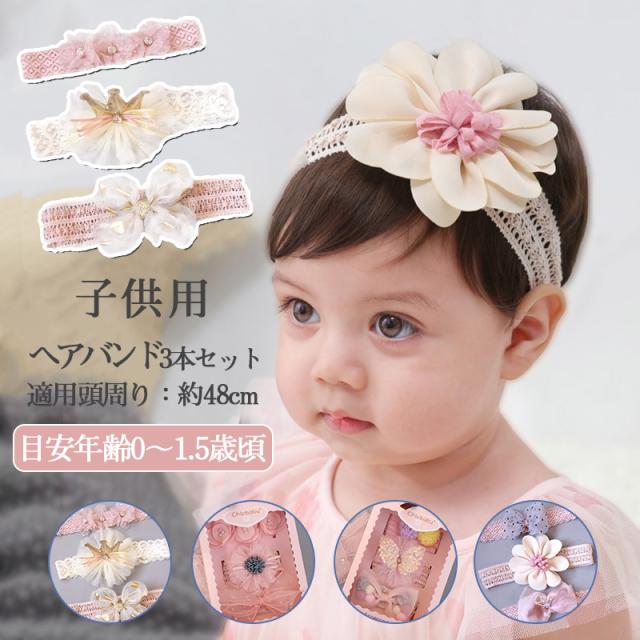 赤ちゃん ヘアバンド ベビーヘアバンド 赤ちゃんヘアバンド 新生児 ヘアゴム 子供 花 3本セット プレゼント 誕生日 可愛い