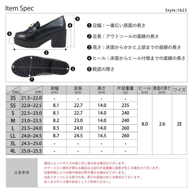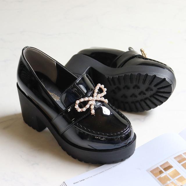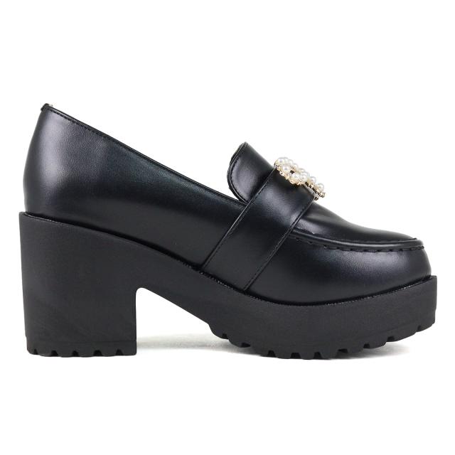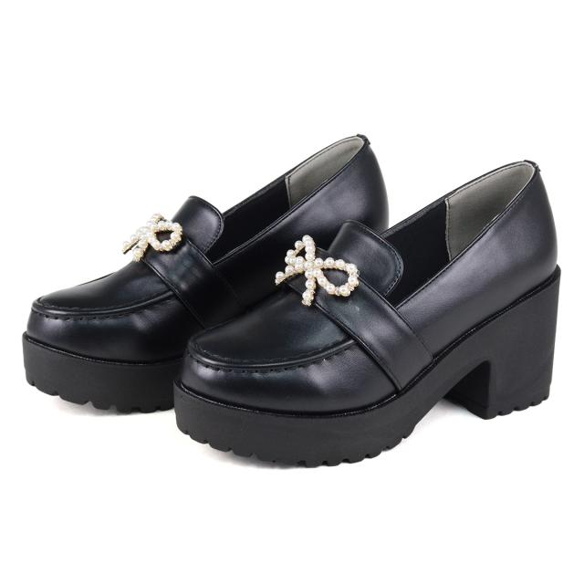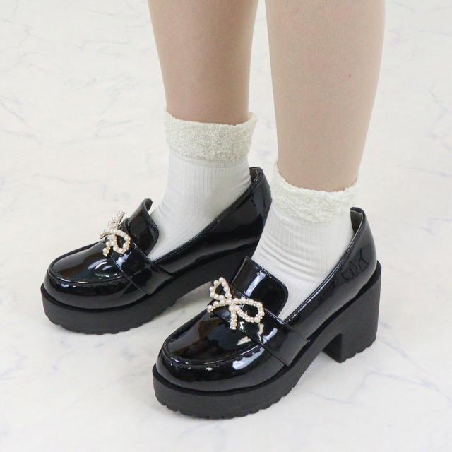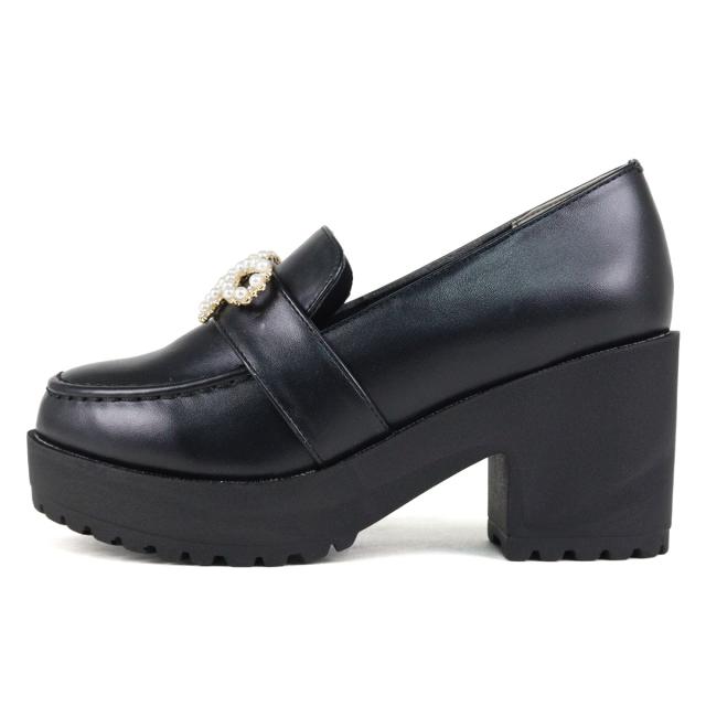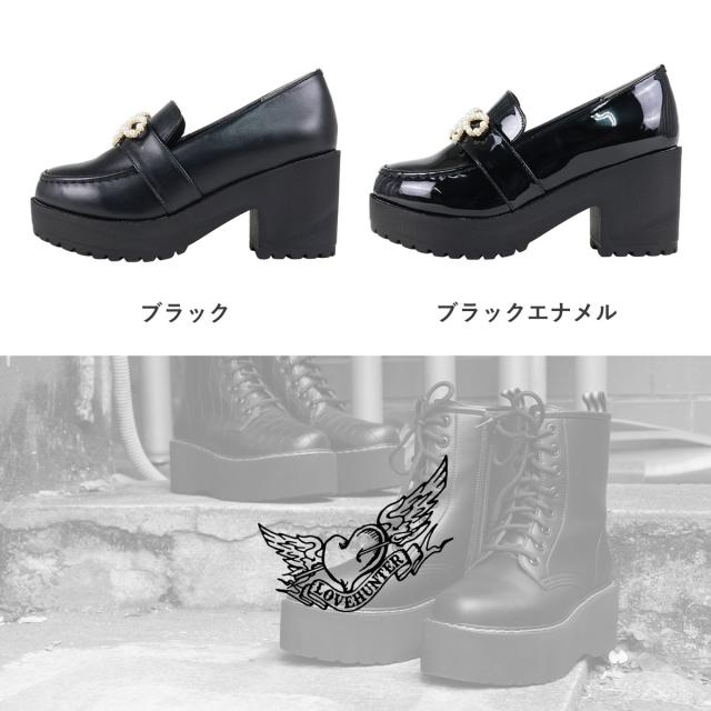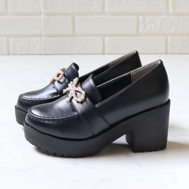 ローファー リボン ビジュー レディース 厚底 8cmヒール 軽量 美脚 No.1623 22.0cm-24.5cm 黒 LOVEHUNTER ラブハンター