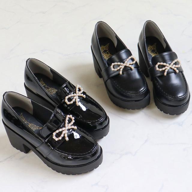 【LOVEHUNTER ラブハンター】のパールリボンローファーパンプス。