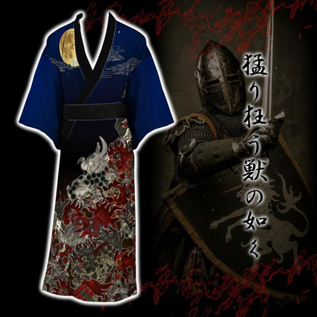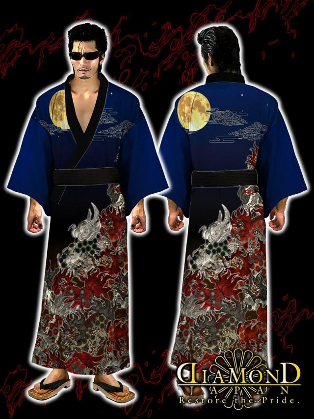 浴衣 和柄 月夜に唐獅子 黒青 紺 ヤクザ ヤンキー オラオラ 悪羅悪羅 オラオラ系 和服 着物 DIAMOND JAPAN DJ-201 派手 夏物 祭 花火 イベント メンズ ファッション 大きいサイズ
