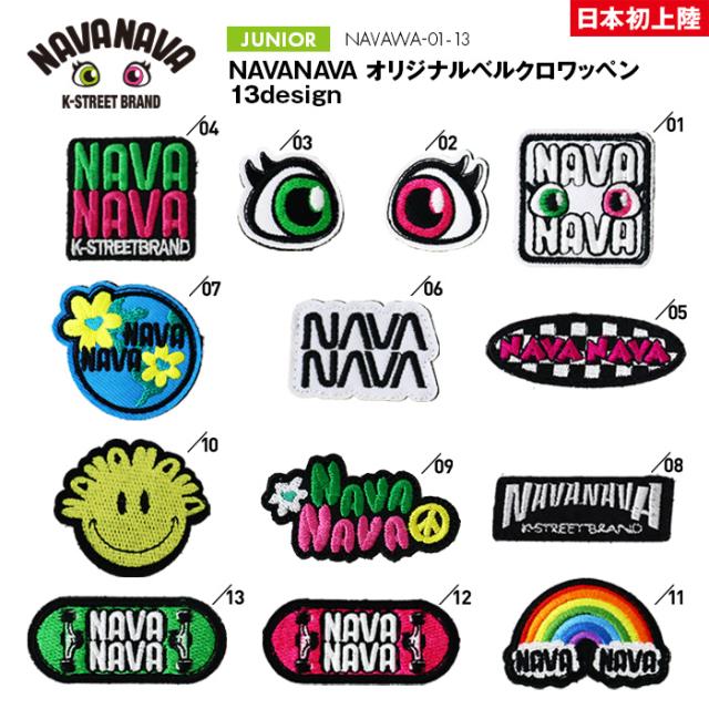 NAVANAVAオリジナルのウェアやキャップに貼り付けて楽しくカスタマイズできる。取り外しも簡単!