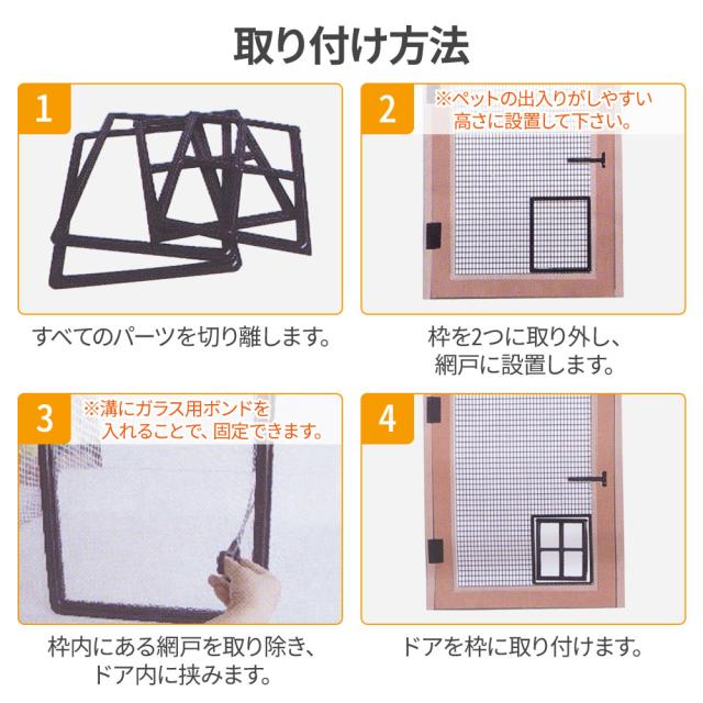 網戸 猫ドア キャットドア ペットドア 猫出入り口 壁 取り付け サッシ diy 網戸専用 犬猫出入り口 犬 出入り口 出入り
