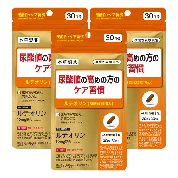 尿酸値の高めの方ケア習慣 30粒 3個セット ルテオリン 機能性表示食品 メール便送料無料