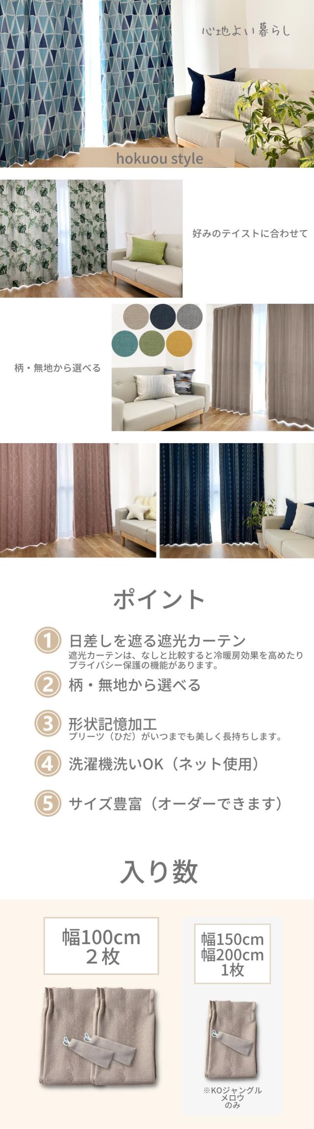 カーテン 遮光 北欧デザイン 無地 から選べる遮光カーテン 2級遮光 3級遮光 1級遮光 幅100 2枚 幅150 1枚 【UNV】unv